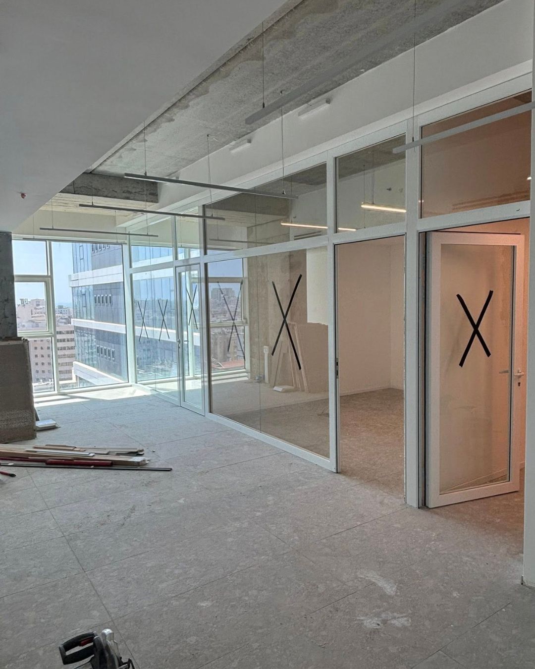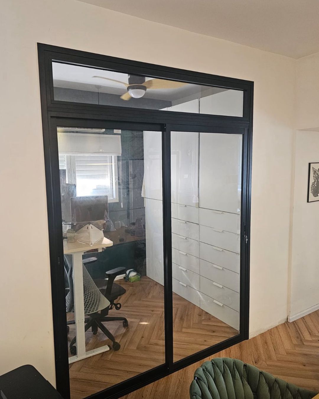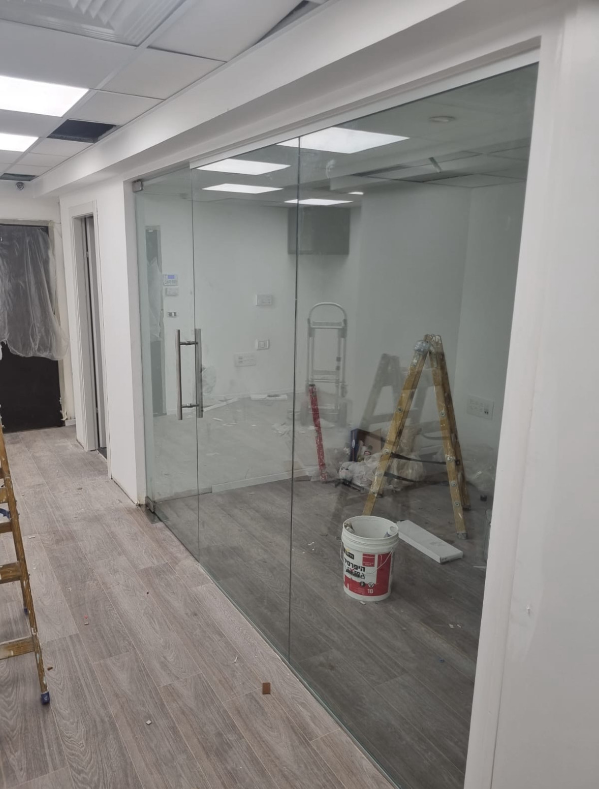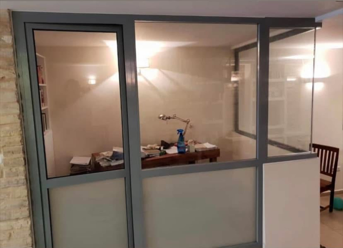 מחיצת חדר משרדים בדלתות מפרופיל 2000 כולל קירות גבס