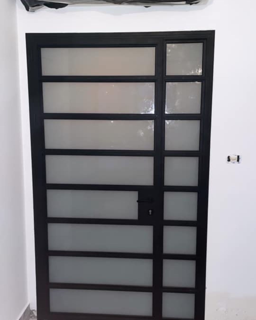 דלת בלגית מעוצבת משולב זכוכית גלינה פסים 8 ממ